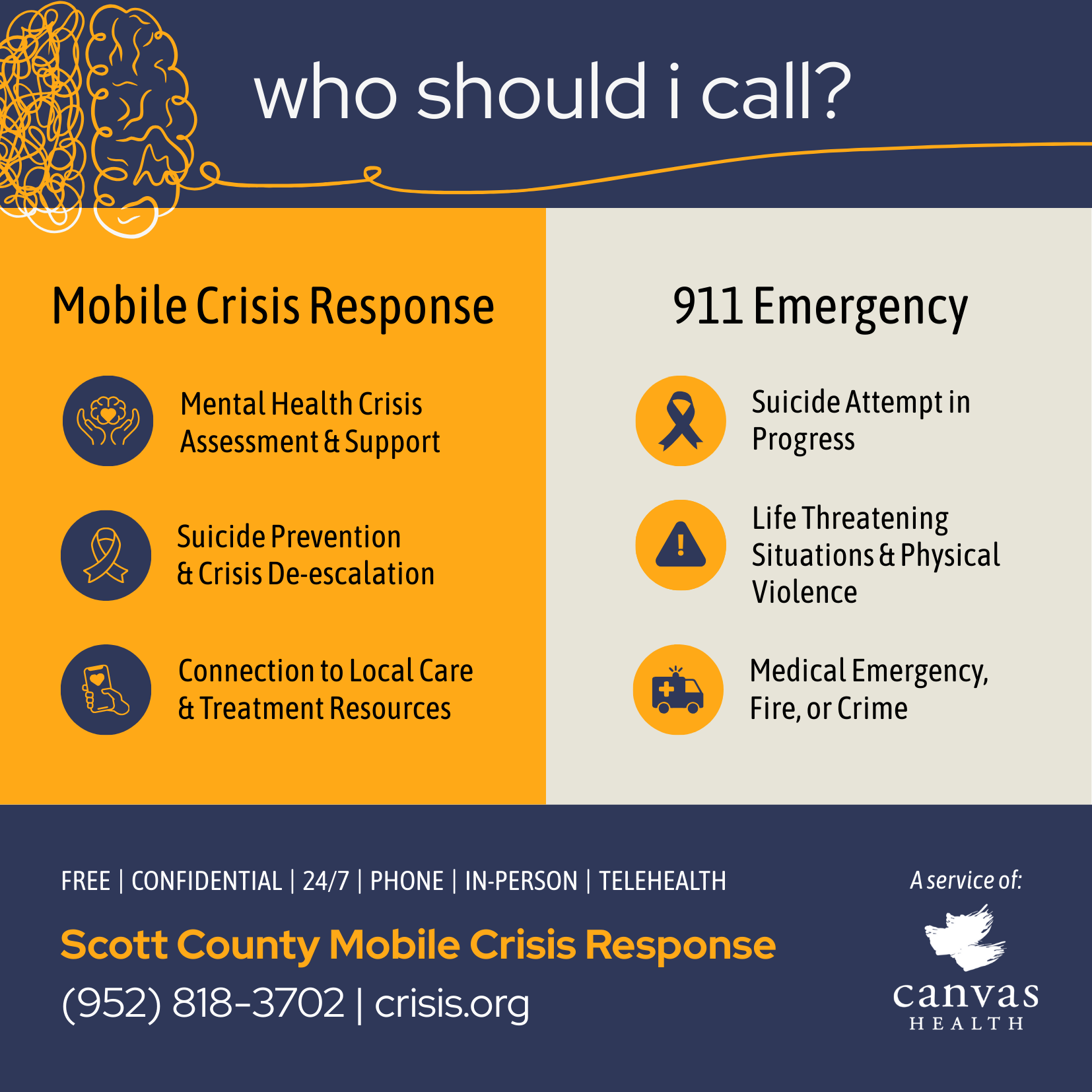 Help us spread the word about our mobile crisis response services in Scott County! This printable download is free and ready for you to distribute in your communities.